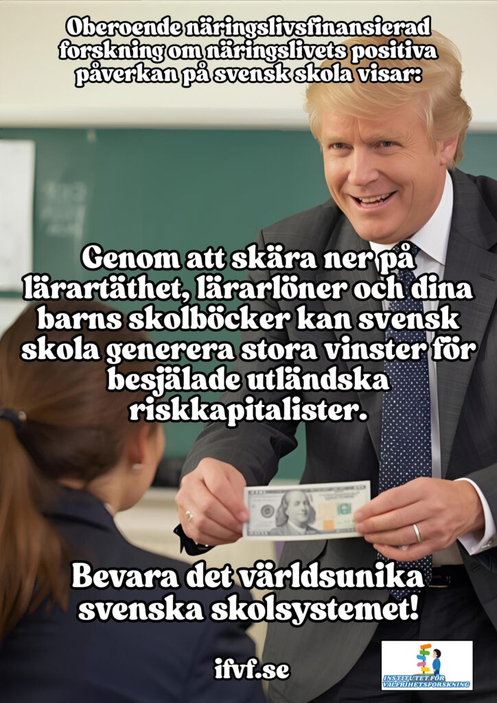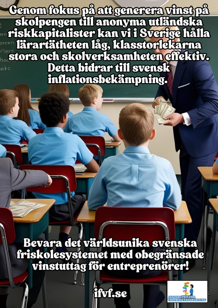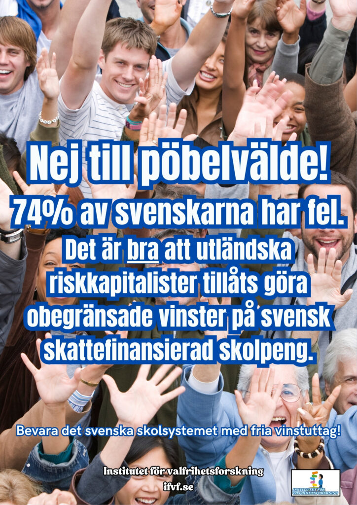 Tillsammans kan vi rädda möjligheterna för besjälade entreprenörer att göra några kronors vinst på sista raden. Ladda ner och skriv ut dessa affischer och låt ett allt mer kritiskt samhälle ta del av alla fördelar med fria vinstuttag inom skattefinansierad vård, skola och omsorg.